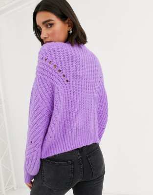 Pull court en grosse maille violet - 408256486A04 | Pimkie